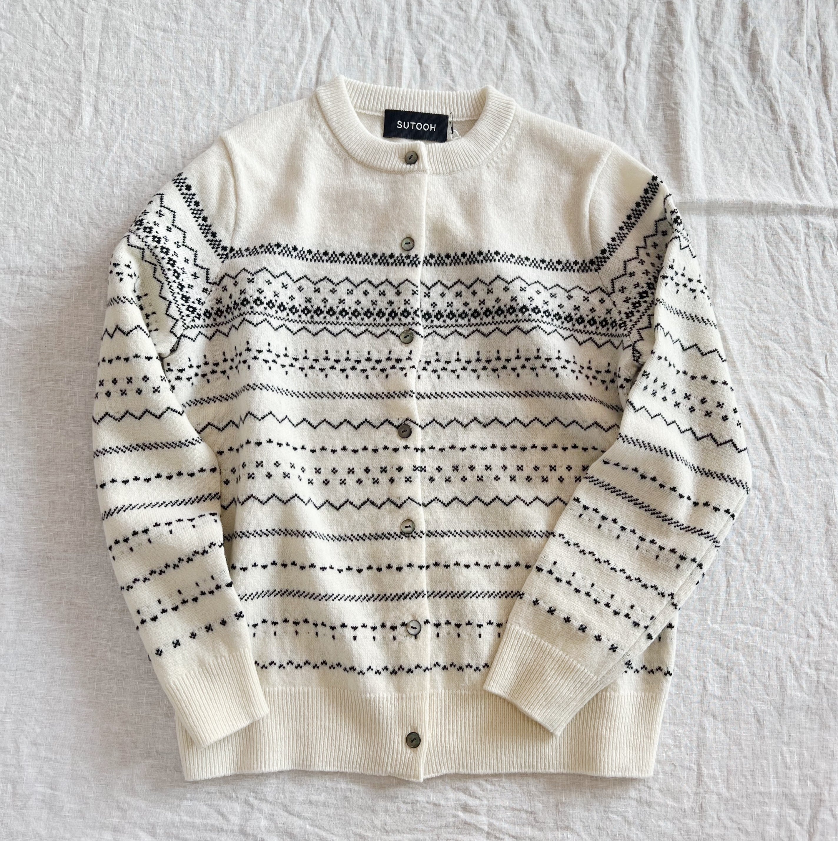 オーストラリア産メリノ種のラムズウールを使った丸首カーディガン。