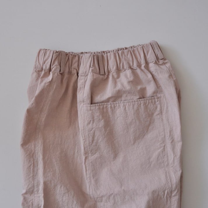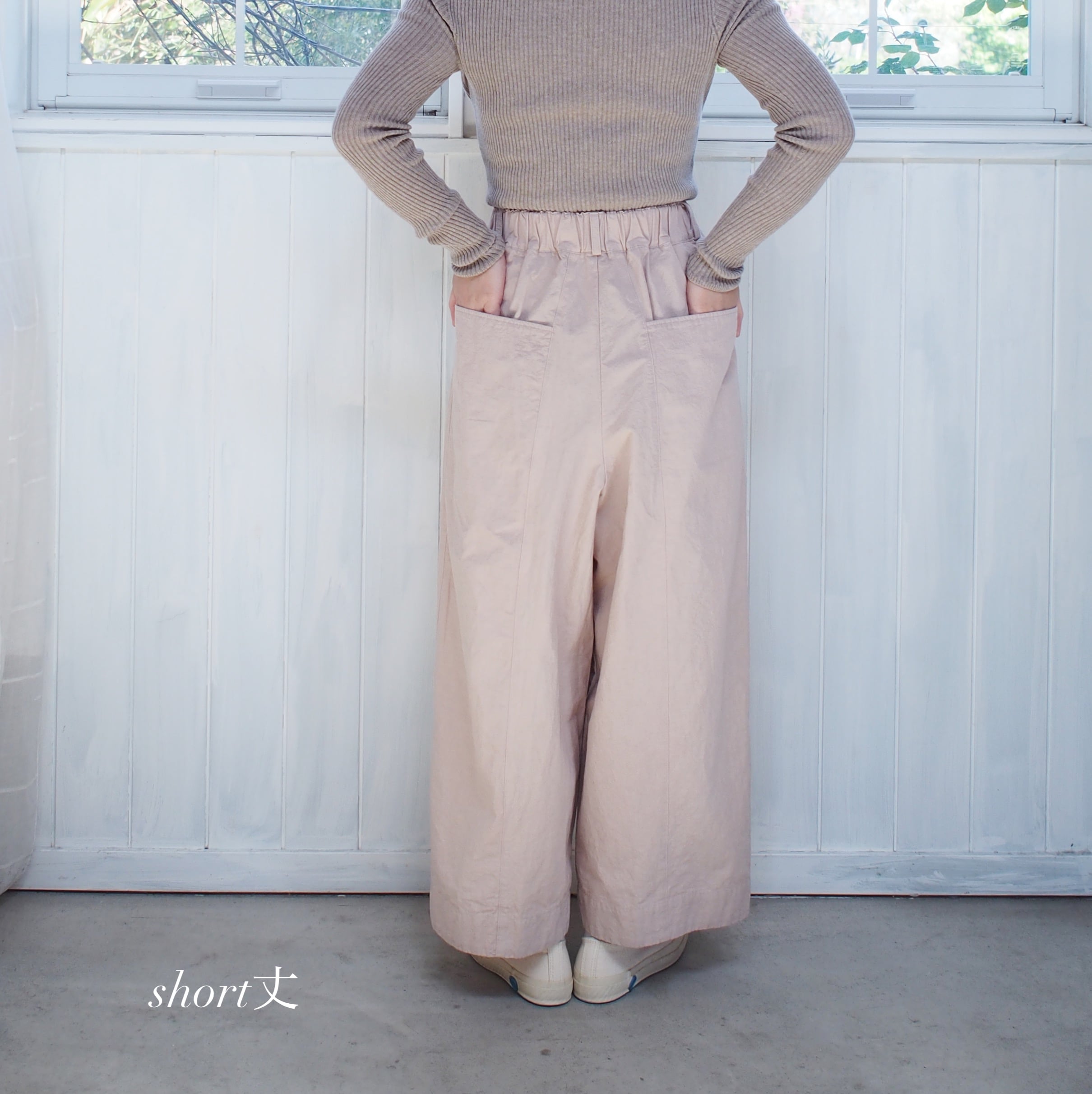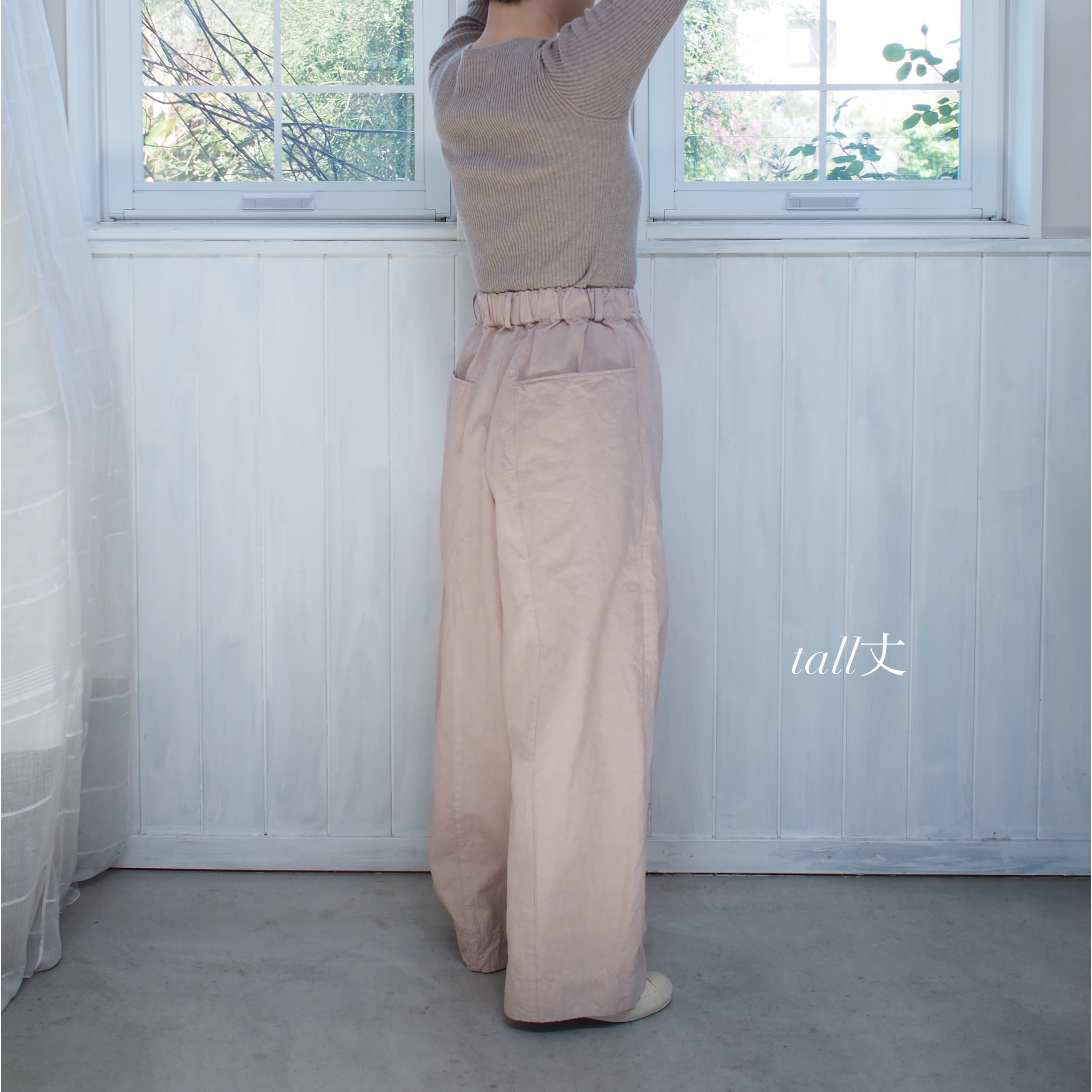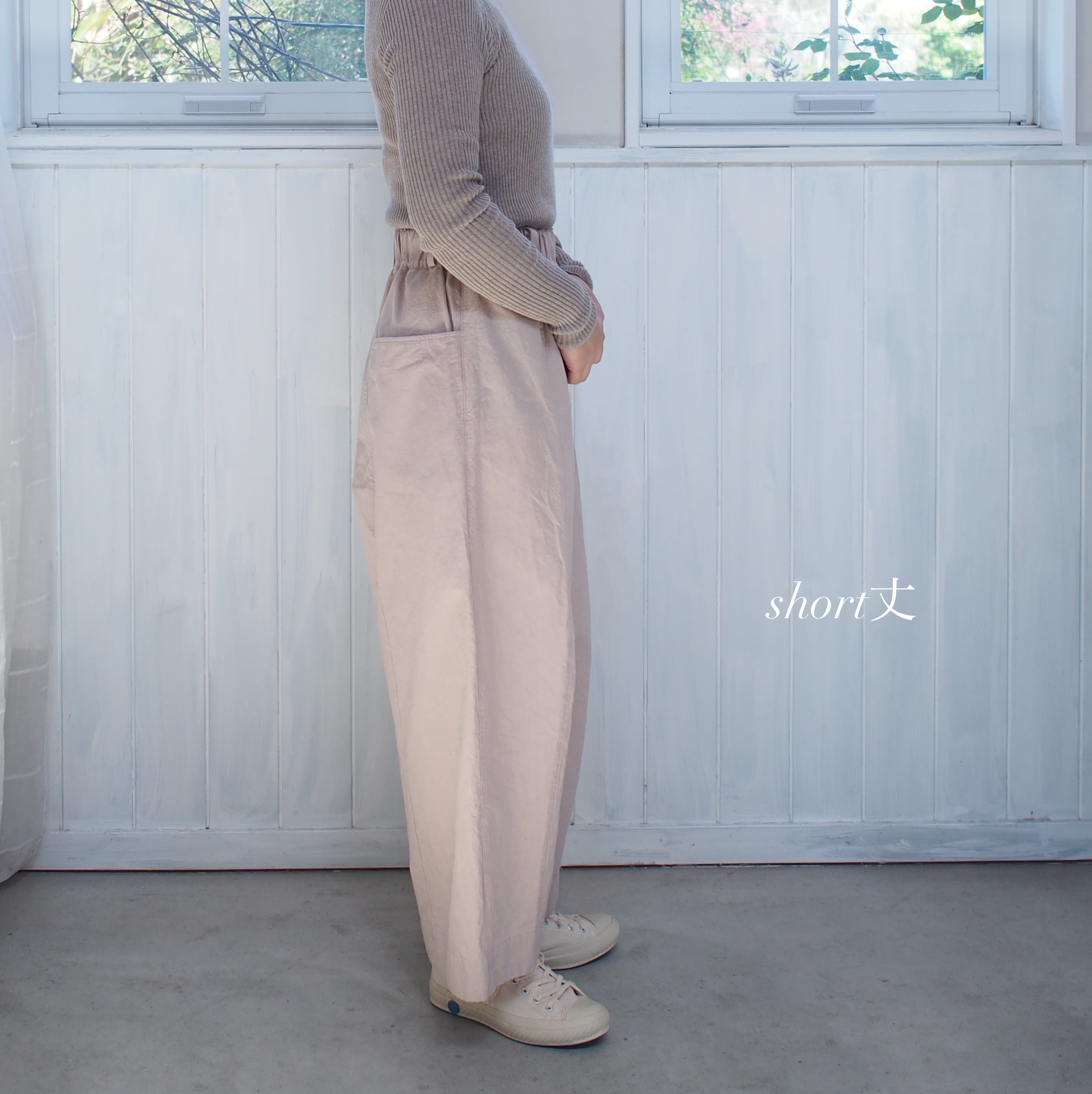 COTTON LINEN CANVAS に比べ少し薄手の綿麻生地のコクーンワイドパンツです。スモーキーな色は色合わせし易く爽やかで涼しげです。裾が少しだけ狭くなったコクーンシルエット。腰回りをうまくカバーしてくれます。後ろのサイドに大きなポケットが2つ。