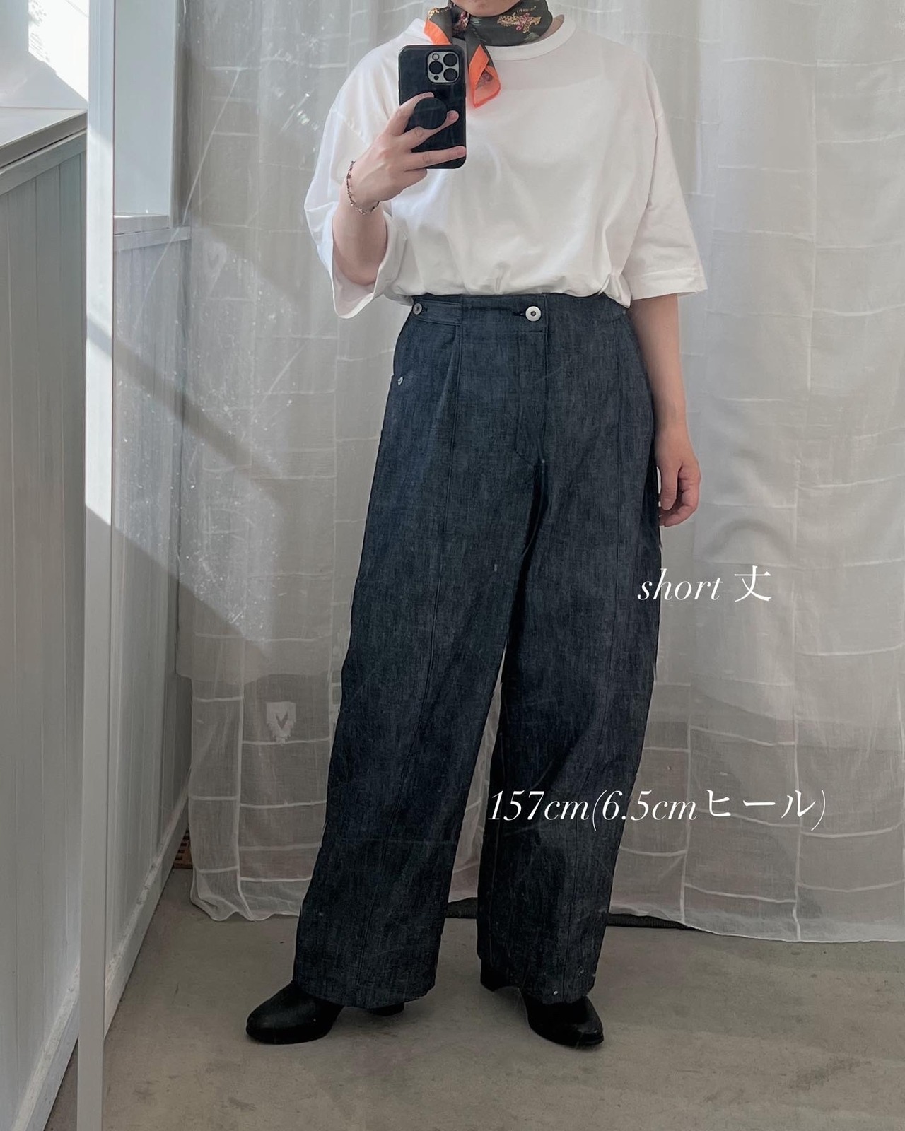 定番のコクーンワイドパンツに比べると縦に落ちるシルエットですっきりとしています。