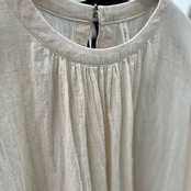 袖口と首元に細やかなギャザーを寄せた可愛らしいデザインのブラウスです。シワ加工が施された生地は素朴な落ち着いた雰囲気で、たっぷりのフリルデザインでも甘くなりすぎず大人っぽく仕上がっています。